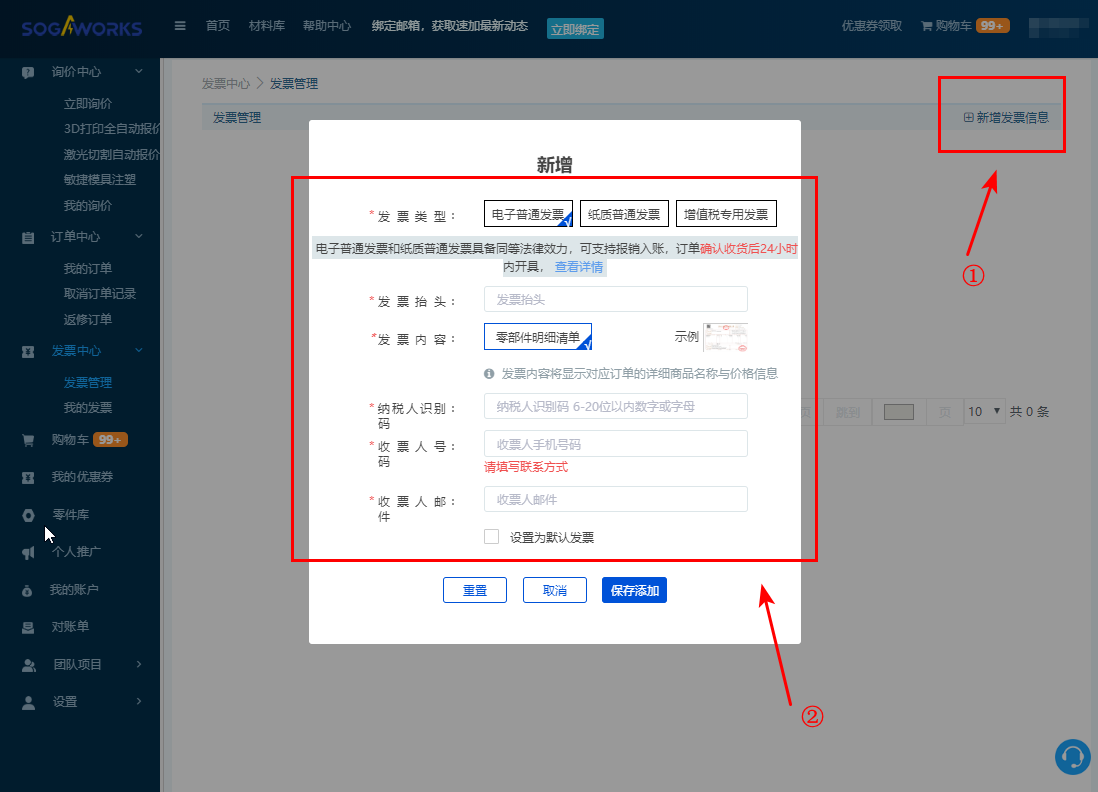 3. 點擊【新增發(fā)票信息】,按提示完善信息