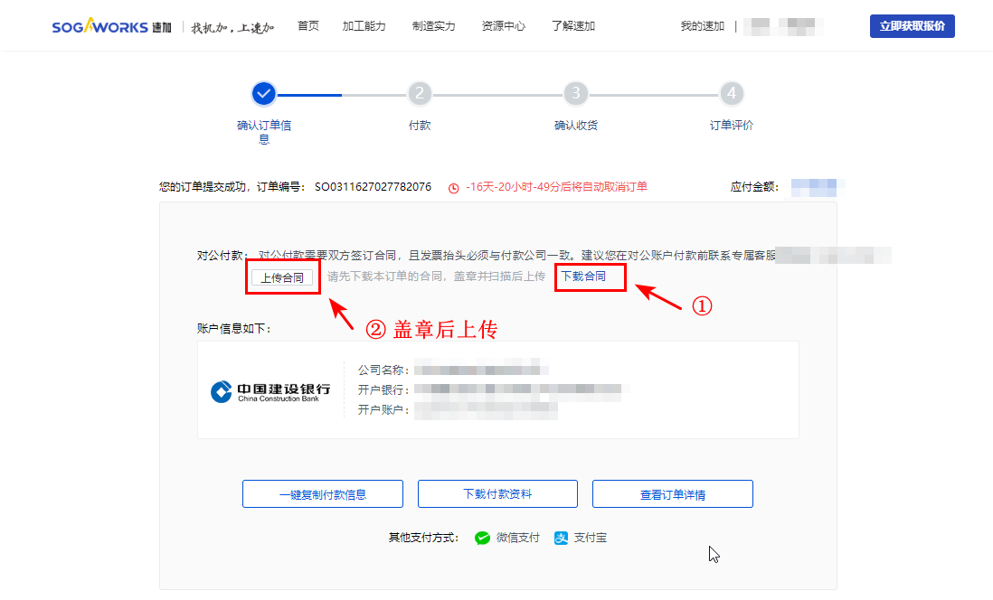 7. 點(diǎn)擊【下載付款資料】,可獲取對公轉(zhuǎn)賬信息